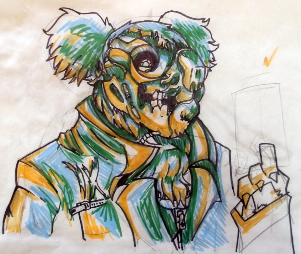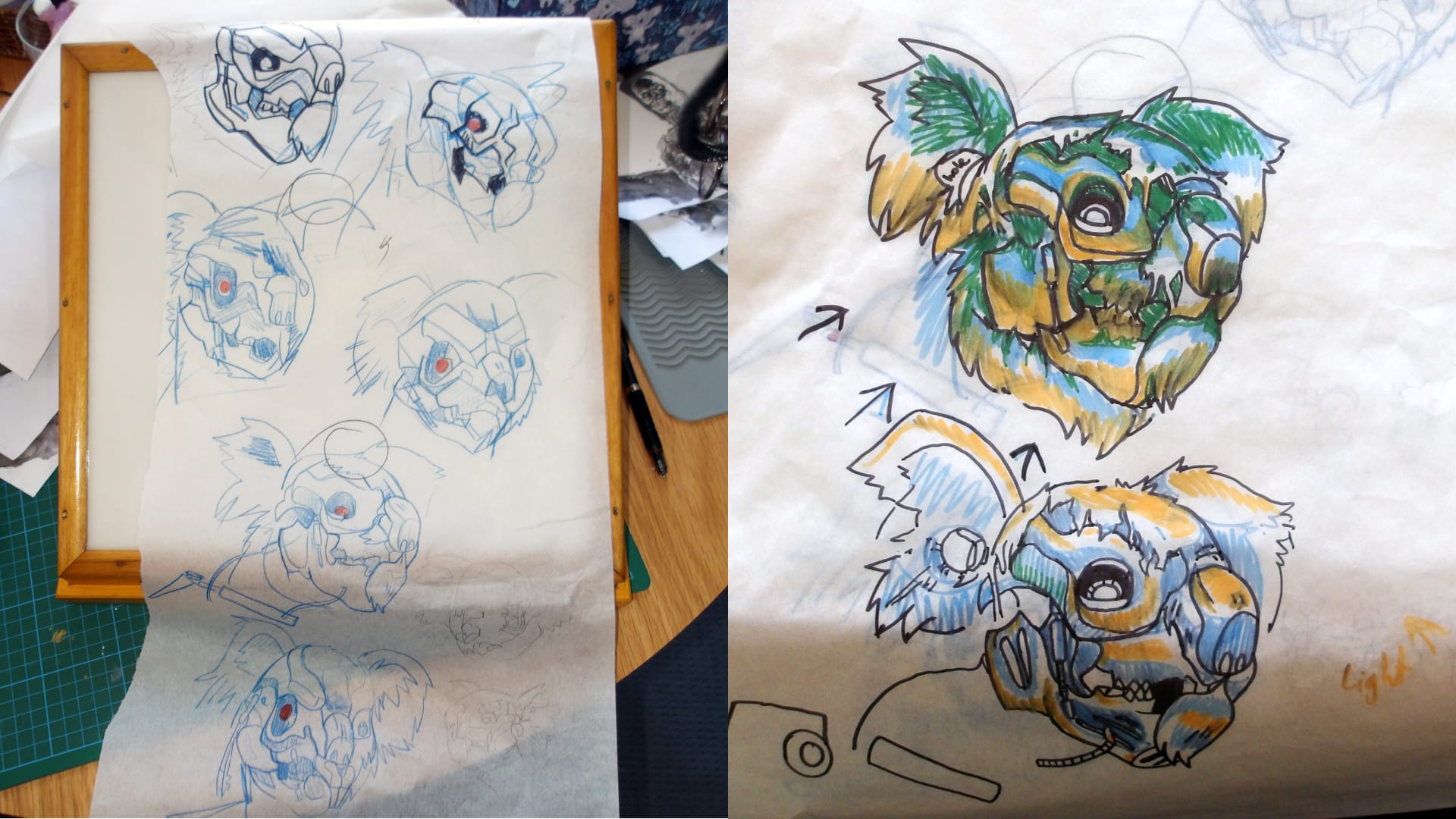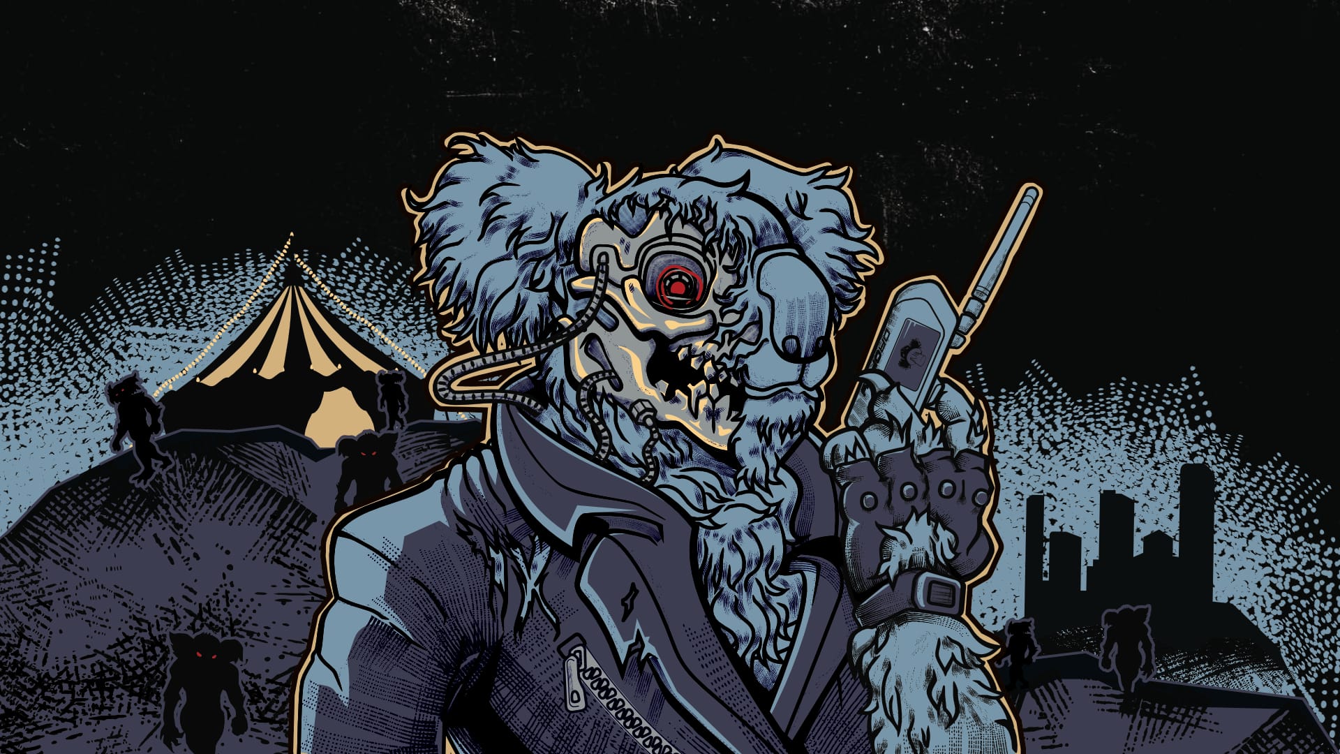 The brief for this year was to continue with the theming of CrikeyCon VIII, I fortunately had flexibility to deviate from the design to create something distinct from last time. To continue the theme, I rolled with the idea of a Droppy-led cyber invasion from the circus with Terminator elements.