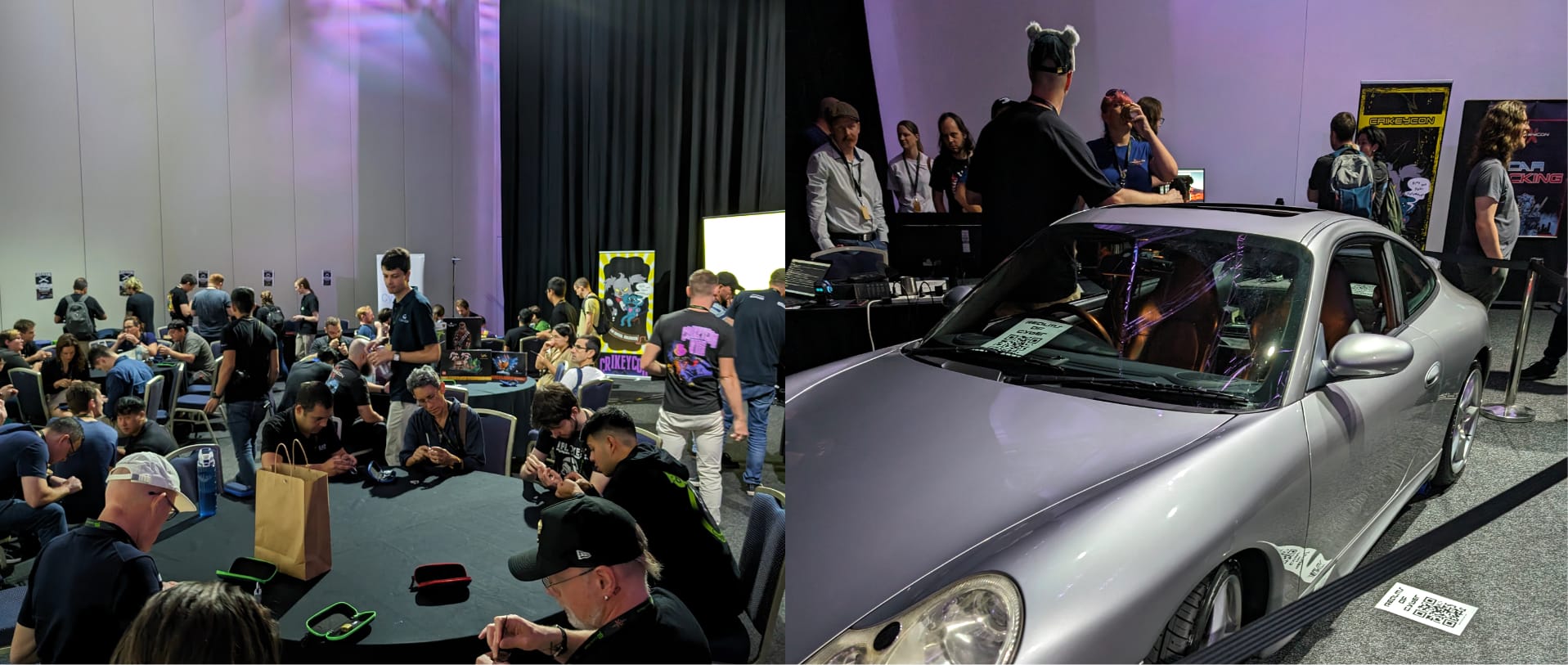 Pictures from the dedicated lockpicking room and car hacking display. It's hard to see from the pictures but the CAN bus of the Porsche was hooked up to an interface to demonstrate how to mess with CAN traffic. Check out 2Puck's write up on how he made the demo possible.