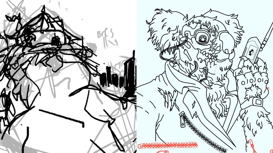 Once I had a concept I was happy with, I started to create a vector in Affinity Designer. There was a good amount of time put into the initial line work as my sketch didn't have everything 'figured out'. The background and addition of the Flipper Zero was made in hindsight, deviating from the traditional workflow.