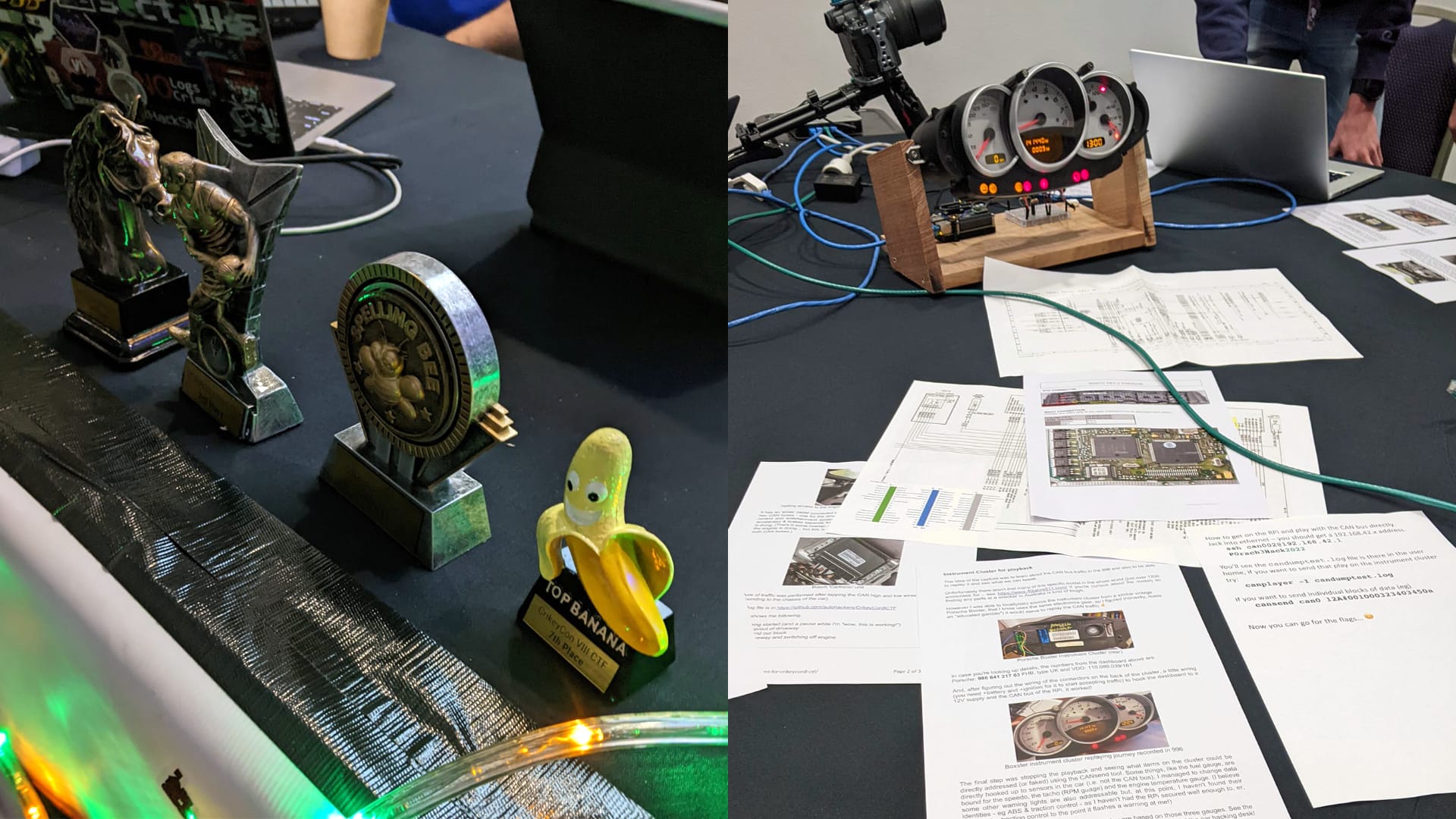 There were some choice prizes up for grabs for the CTF. Also some really interesting demonstrations for car hacking.