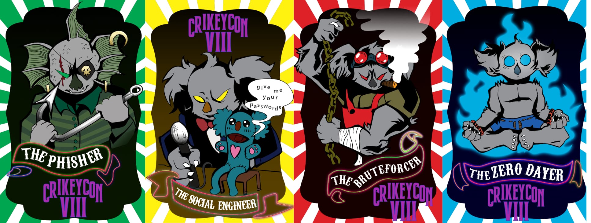 Creating the key art and collateral for CrikeyCon VIII, a cybersecurity convention held in Brisbane, Australia.