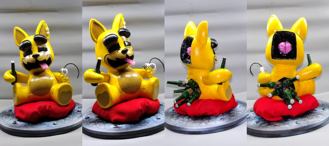 I had a lot of fun with the accessories. Following the 'working-it-out-as-I-go' ethos, the choice of accessories were made as I was painting the character and from mostly resin 3D printed or recycled materials. For example, the cushion was made out of some scrap material, doll filler and screwed into the model itself to provide extra stability. The tongue was also made out of repurposed silicon that didn't quite set right. While it failed as a potential mould, it made for a perfectly squishy tongue.
