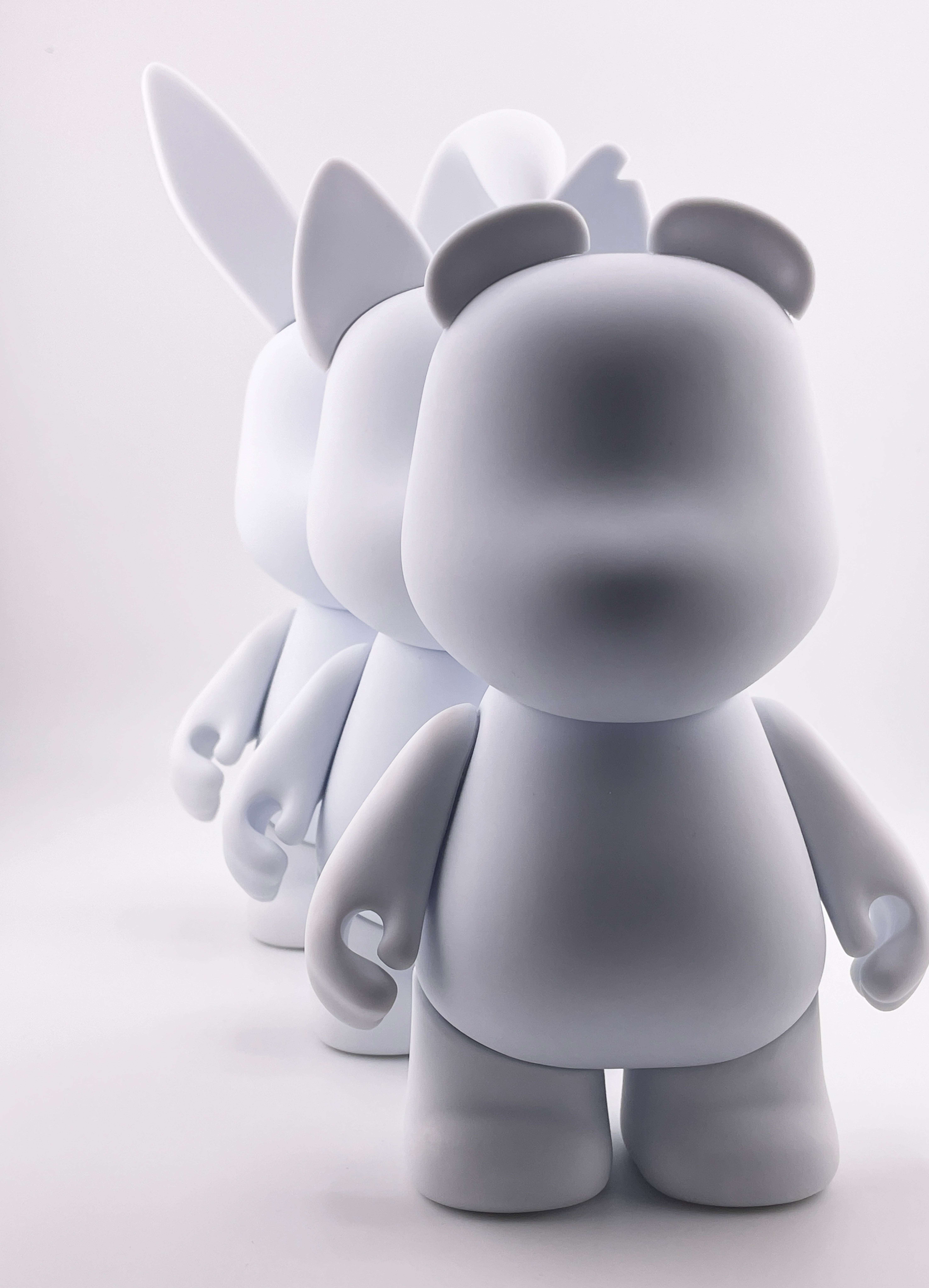 A custom 3-in-1 Mayde vinyl toy submitted to a showcase.