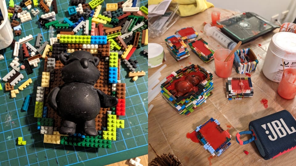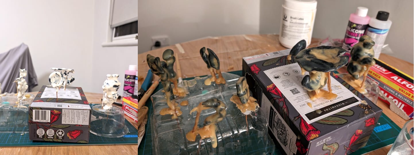 Still being fairly new to the whole mould-making process, I experimented a little bit with brush on latex to see if I could make moulds from less materials. They didn't quite work out, but I'm optimistic about trying the technique again in future projects with proper guidance. For example, this article does a great job at demonstrating how to utilise liquid latex for mould making. I ended up reverting back to silicon, but I found the latex moulds exceptionally useful in the painting phase for masking.